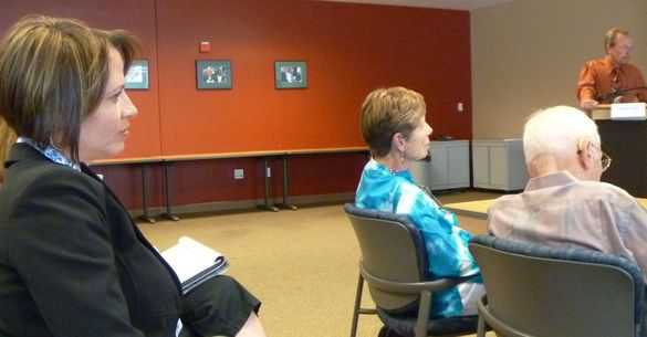House District 43 candidate Stephanie Garcia Richard, at left, was among audience members at Thursday’s forum. Monitor Publisher Keven Todd, at right, served as moderator. Courtesy photo