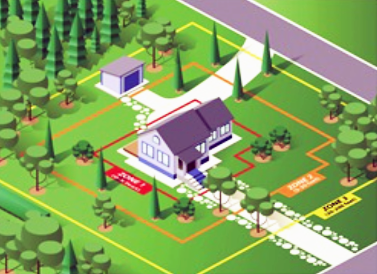 Defensible space is the area around your home in which vegetation, debris, and other combustible fuels have been removed to slow the spread of fire to and from the home. It prevents vegetation from igniting due to direct flame contact and spreading to your home. Defensible space is essential to help protect a structure and create a safer area for firefighters during a wildland fire.