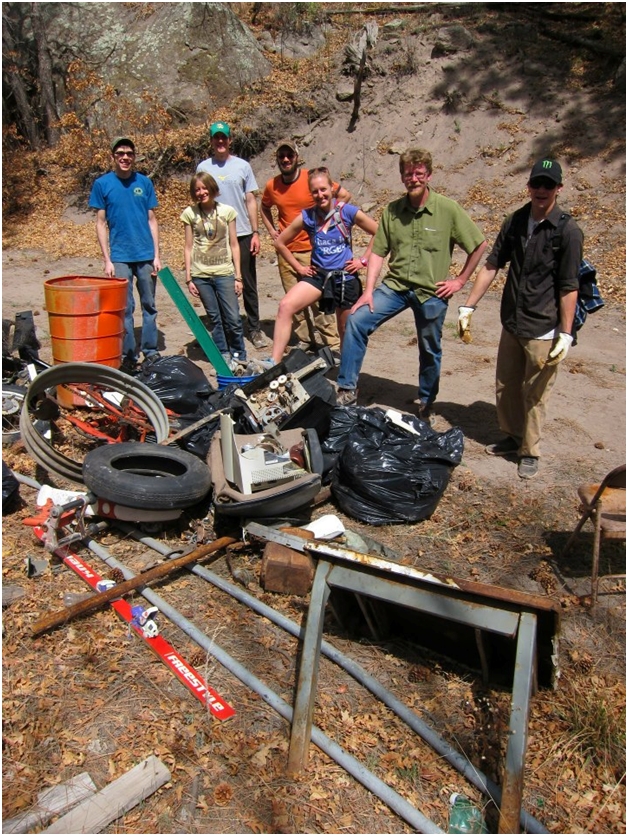 Employees of the Los Alamos Coop Market spent Clean Up Los Alamos Day removing a massive amount of trash and debris from their newly adopted section of the Pueblo Canyon Trail. From left, Cody Ulibarri, Brit Foster, Matt Dreier, Shawn West, Whitney Dreier, Tim Morrison and Cooper Holder. Open Space Specialist Craig Martin said, “Great job, crew! That’s not an easy place to work but you hauled out plenty of trash. Many thanks from the community.” Courtesy photo