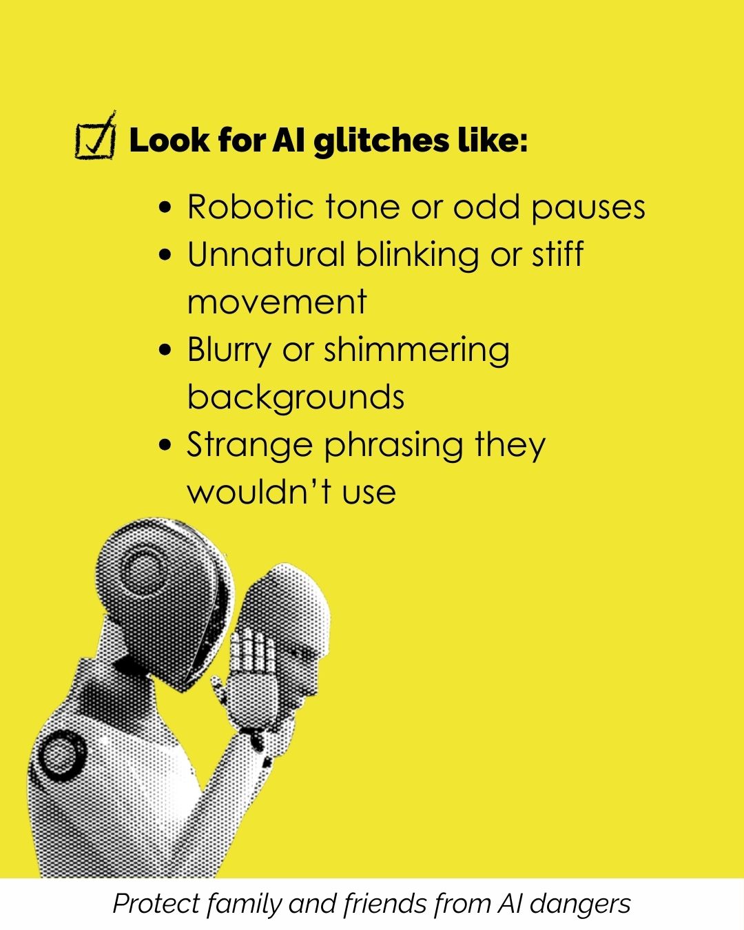 From cloned calls to deepfake videos, scammers can pretend to be someone you love and create a false “emergency” to pressure you into sending money or sharing sensitive information.