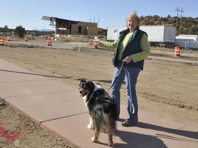 Membership Coordinator Katy Korkos of the Los Alamos Chamber of Commerce walks with her dog Socs near the construction site of the White Rock Visitor Center on N.M. 4., which is beginning to take shape in the background. Photo by Greg Kendall/ladailyposttest.ortizaudio.net Read More