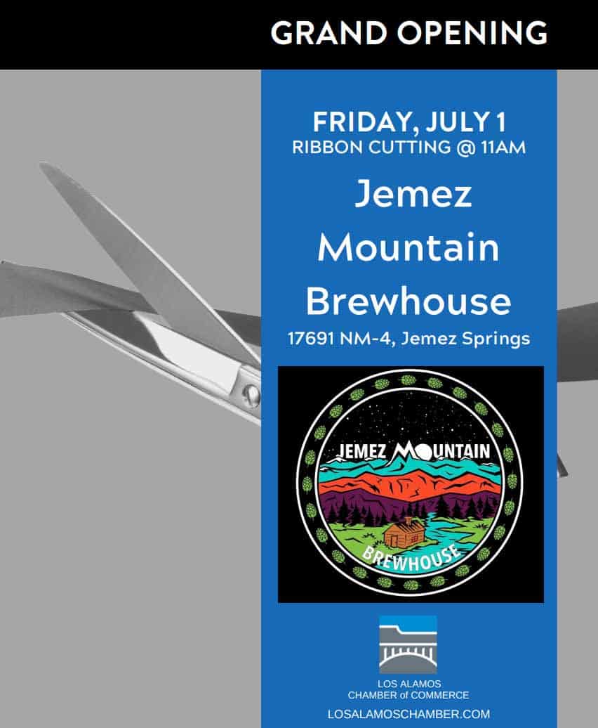 The Chamber of Commerce is celebrating the opening of the Jemez Mountain Brewhouse with a ribbon cutting 11 a.m. Friday, July 1 at 17691 N.M. 4 in the heart of Jemez Springs.