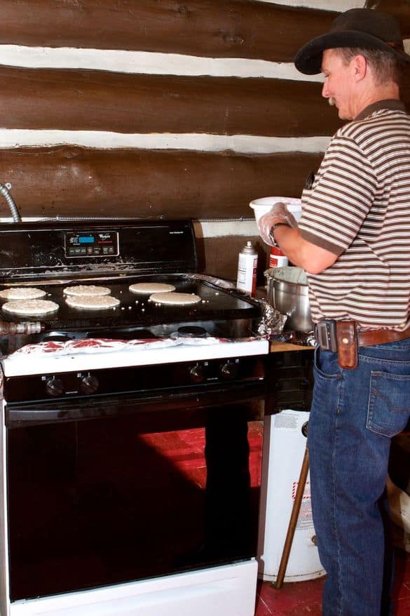 Bill Casson lays down some batter for the Cowboy Breakfast held today and on the first Sunday of each month at the Sheriff’s Posse Lodge. Photo by Salvador Zapien/ladailyposttest.ortizaudio.net