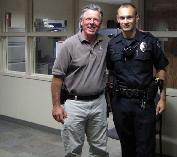 Los Alamos County’s newest Police Officer Oliver McCartney is just 18 days away from completing his probationary period with the Los Alamos Police Department and Chief Wayne Torpy let him know Wednesday at Police Headquarters that he is doing a fine job. Photo by Carol A. Clark/ladailyposttest.ortizaudio.net