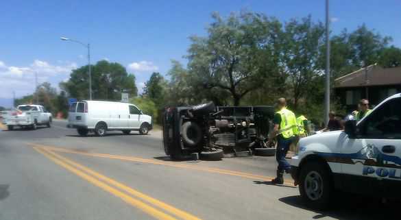 A white van on Central Avenue attempted to enter East Road at about 2:15 p.m. today when it struck a Toyota 4 Runner, causing it to flip over and land on its side on East Road. Police report that injuries of the parties involved were minor and no one needed to be transported to Los Alamos Medical Center. The roadway is opening back up to traffic. Courtesy photo Read More