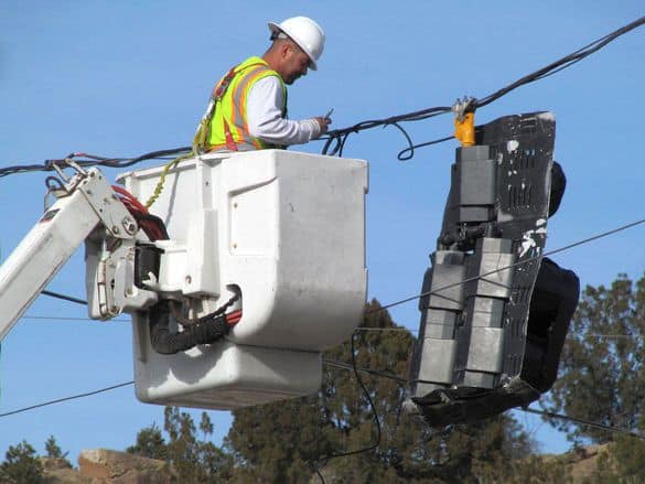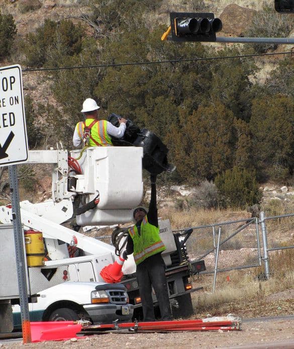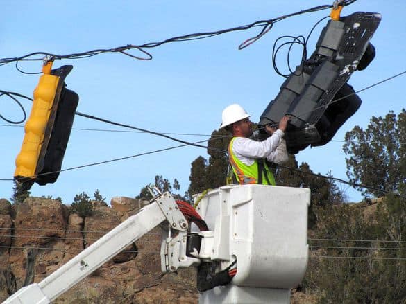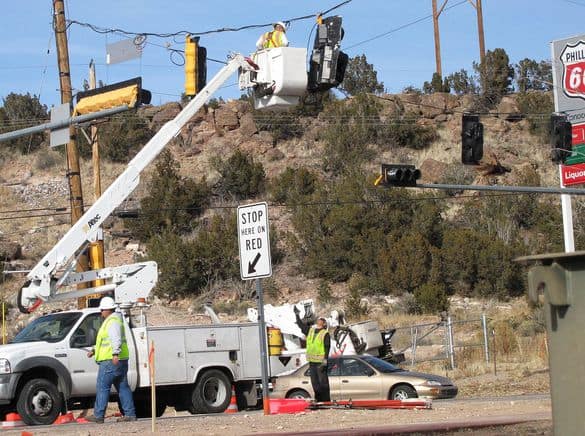 Work crews recently changed out traffic signals at the intersection of Rover Boulevard and N.M. 4. Photo by Carol A. Clark/ladailyposttest.ortizaudio.net